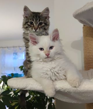 Elise und Antey präsentieren ihre gemeinsamen Kitten.