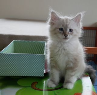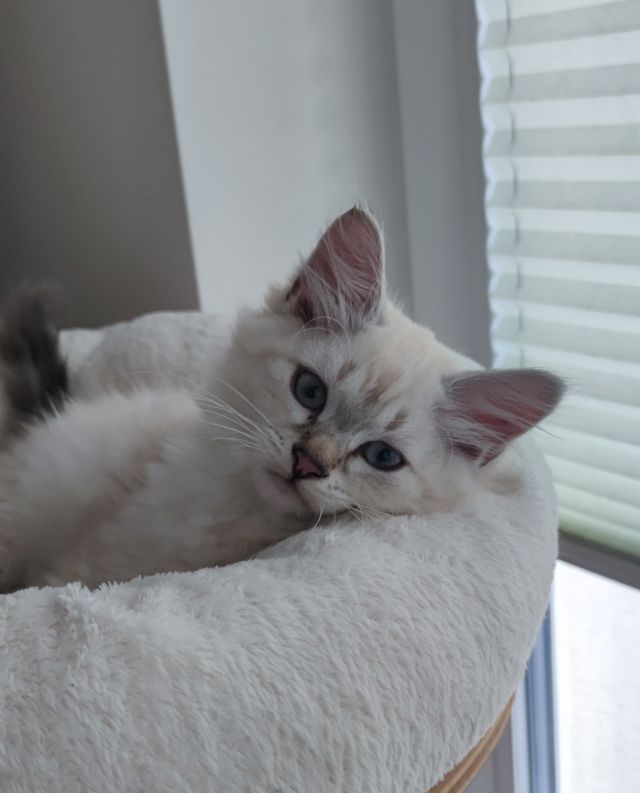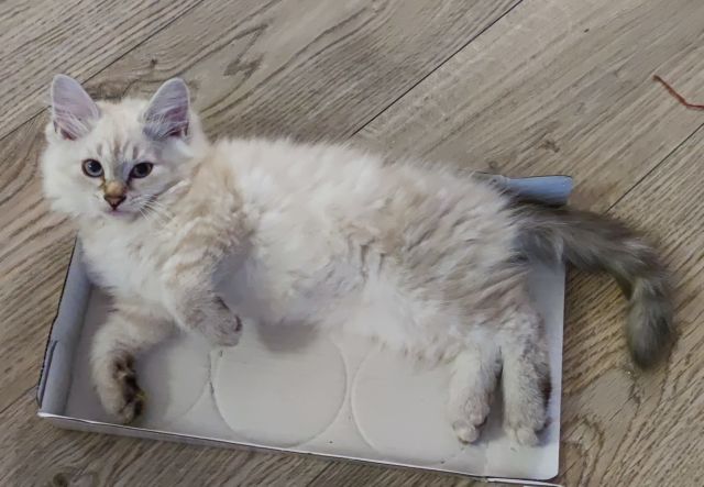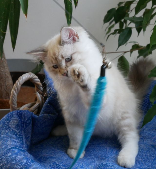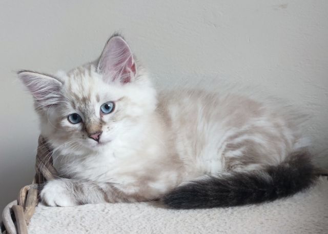 Ove ist der Anhänglichste der 4 Kater. Er ist neugierig und sehr verschmust. Er hat die großen, ausdrucksvollen Augen seiner Mutter gerbt.